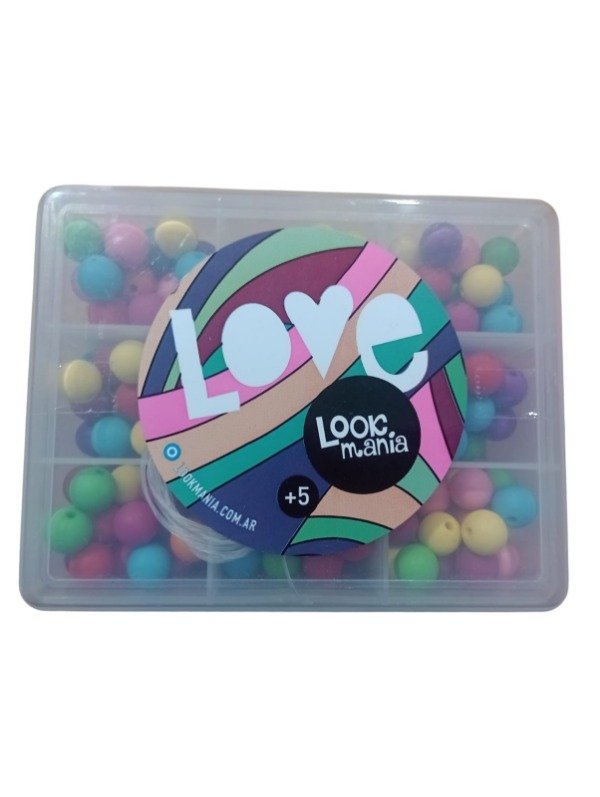 Medida: 10x13x4.5 cm. Viene con mostacillas de plástico y tanza para armar tus propias joyas!