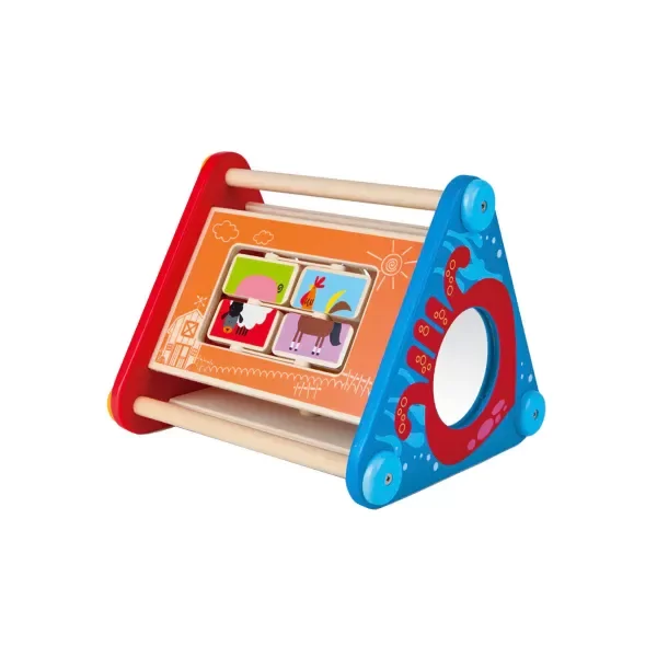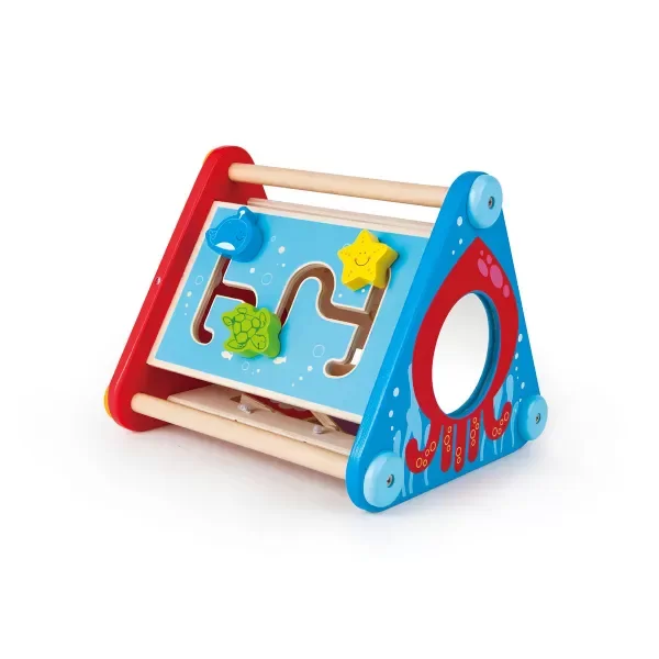 Esta caja de actividades con 5 lados llenos de diversión. Incluye engranajes, bolas, bloques y un laberinto; además de colores, múltiples movimientos y un espejo para reflejar la sonrisa de tus hijos. Un búho con ojos saltones y motivos de animales en coloridos engranajes esperan ser descubiertos. La multitud de elementos giratorios y deslizantes entrena las habilidades motoras finas de los niños a partir de los 10 meses. La caja está hecha de madera de alta calidad, pintada con amor y se coloca de forma segura en cualquier superficie. ¿Cómo se llaman los animales que hay en los lados de la caja? ¿Dónde vive cada uno?