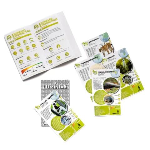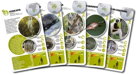 Mini libro que contiene 32 fichas infográficas, envuelto en caja de cristal plástico. Es un juego enciclopédico que se basa en fichas técnicas muy completas que brindan un contexto comprensivo para ir asimilando conocimiento de forma divertida mediante el juego en familia.