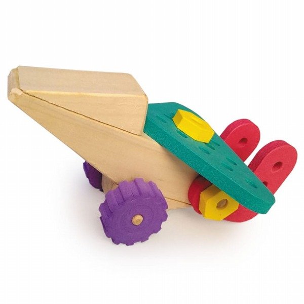 Línea de juguetes didácticos para armar que conjuga la calidez de la madera y el color y la suavidad de la goma eva. La primera sirve de estructura de los diferentes modelos, mientras que la goma eva le da color y forma definitiva. La unión de las piezas se realiza mediante un sencillo encastre que permite armarlos fácilmente, subiendo la autoestima en el juego, elemento fundamental para el desarrollo cognitivo. Todo el conjunto se cierra con tuerquitas coloridas de ajuste que brindan al juguete una imagen novedosa y moderna.