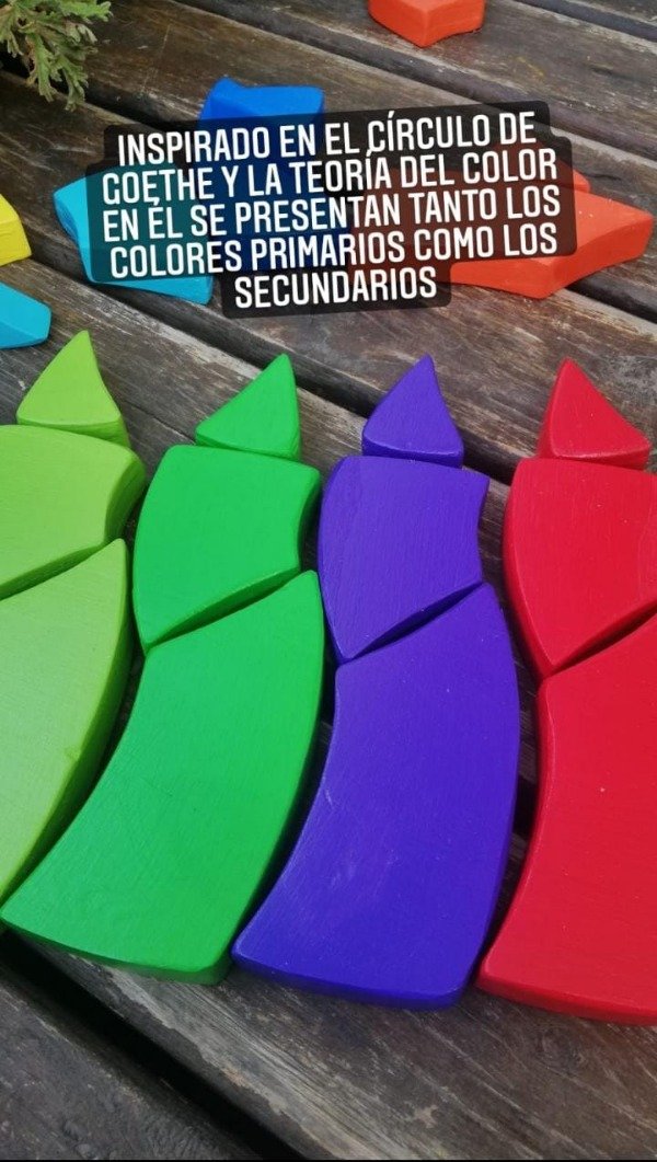Permite explorar con los colores, el círculo cromático, el armado del rompecabezas y la libre imaginación de las figuras