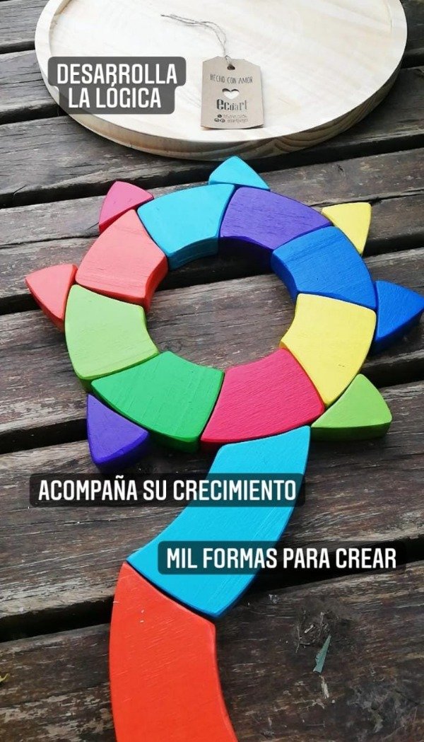 Las piezas permiten una gran variedad de juegos, ya q se utilizan para formar diferentes figuras: desde soles, mandalas, figuras antropomórficas y animales.