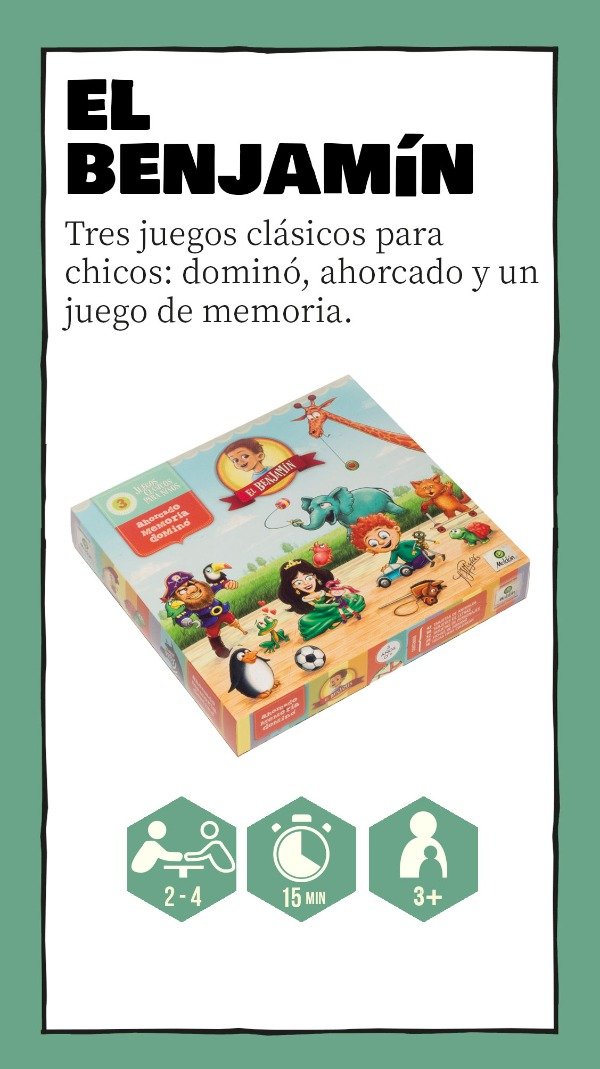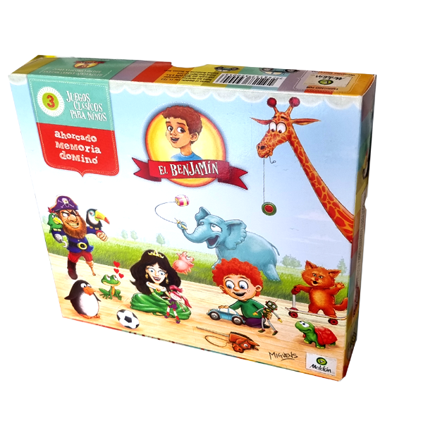 Un juego de mesa que contiene tres clásicos infantiles: el ahorcado, el dominó y el juego de la memoria. Incluye también 18 hojas con dibujos para colorear. Un giro simpático de juegos clásicos, ideal para chicos de distintas edades. A partir de los tres años ya pueden disfrutar del juego de memoria y dominó (¿alguna vez jugaron al juego de la memoria con un niño de tres años? Es increíble, a esa edad tienen una especial habilidad que después se diluye) y cuando están aprendiendo las letras el ahorcado resulta infalible.