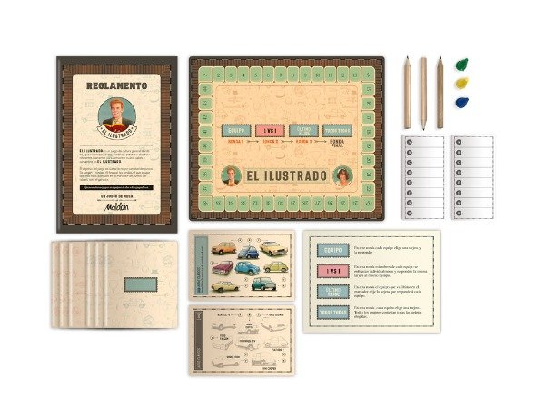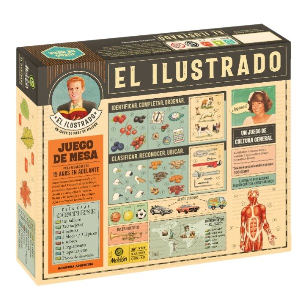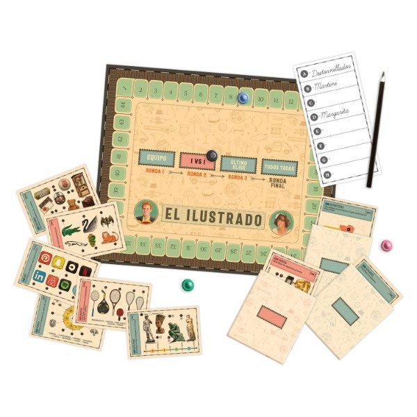 El Ilustrado es un juego de mesa de cultura general con tarjetas ilustradas donde hay que reconocer, ubicar, identificar, ordenar o clasificar diferentes elementos para demostrar todo lo que sabés. El juego cubre diversos temas y no es solo para sabelotodos del conocimiento académico: tipos de baile, yerbas, discos de los Stones, canchas de deportes, marcas, países y hasta herramientas aparecen en estas muchas tarjetas ilustradas por el talentoso Andrés Miguens.