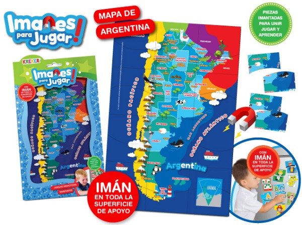 Incluye 24 piezas imantadas. Para el aprendizaje de las provincias, capitales y países limítrofes.