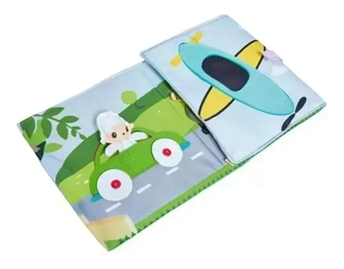 Un precioso libro sensorial de tela para descubrir los transportes.