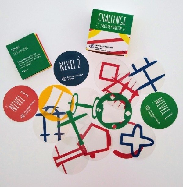 CHALLENGE es un juego de cartas que propone la estimulación de procesos atencionales, viso- perceptivos, de memoria visual y razonamiento espacial. El objetivo es analizar los desafíos, retener en la memoria de trabajo su forma o color y dar una respuesta adecuada. Una segunda etapa implica la identificación del orden en el cual la superposición de patrones determina la realidad completa. Se proponen ejercicios en 3 niveles de complejidad. Este juego puede ser utilizado por niños a partir de los 8 años de edad, así como por adultos mayores con riesgo de deterioro cognitivo.