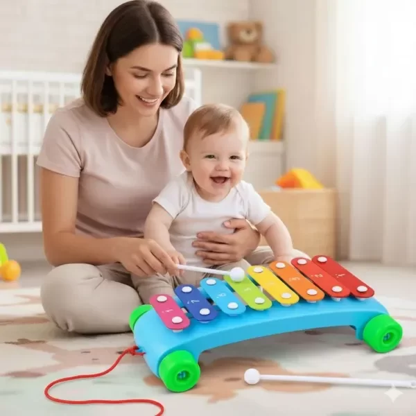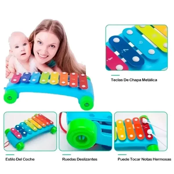 ¡Descubre el maravilloso Xilófono Carrito Musical, el compañero perfecto para que los pequeños exploren el mundo de la música mientras se divierten! Este juguete combina creatividad, aprendizaje y movimiento, ofreciendo horas de entretenimiento educativo. Características: -Caja de Música Interactiva: Con 8 botones de notas musicales, los niños pueden tocar melodías simples y aprender sobre la música de forma divertida. -Diseño de Arrastre: Equipado con ruedas, permite que los pequeños lo tiren mientras caminan, promoviendo la actividad física y la coordinación. -Desarrollo Integral: Estimula habilidades sensoriales, coordinación mano-ojo, y apreciación musical mientras refuerza la conexión entre padres e hijos. -Medidas aproximadas: 30 cm. Edad Recomendada: +3 años.