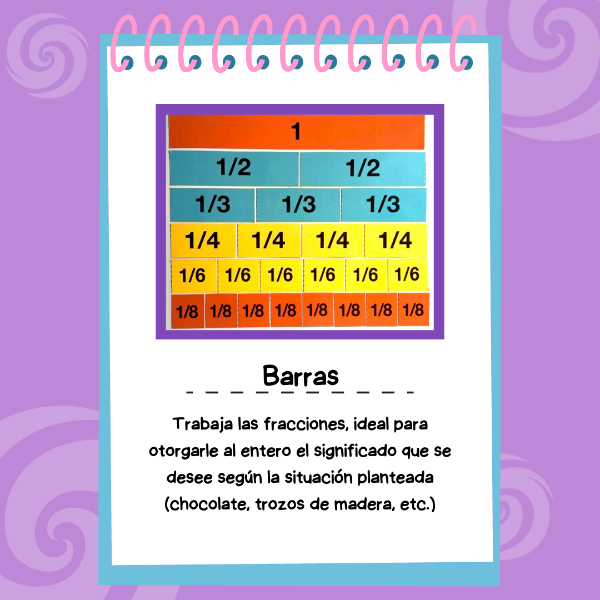 Las barras fraccionadas constituyen una herramienta práctica a fin de poder otorgarle al entero el significado que se desee según la situación planteada (barra de chocolate, trozos