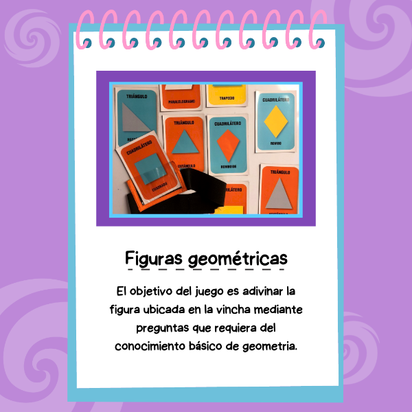 Una manera divertida y eficaz de aprender el nombre y las características de cuadriláteros y triángulo incentivando la concentración, la observación y el uso correcto del lenguaje matemático.