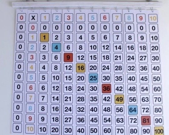 información que se observa al presentar desde el comienzo una tabla pitagórica completa.