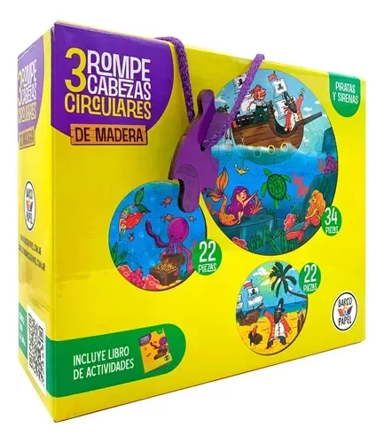 En esta caja vas a encontrar 3 rompecabezas circulares hecho en madera, super resistentes: