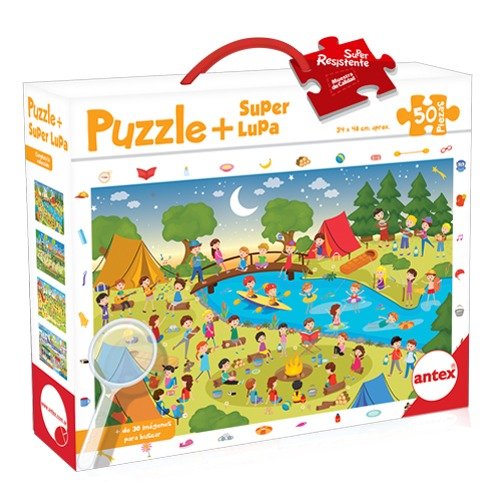 Rompecabezas de 50 piezas con lupa y juego de busqueda. Tamaño del pliego 34 x 48 cm aprox y pieza super resistente.